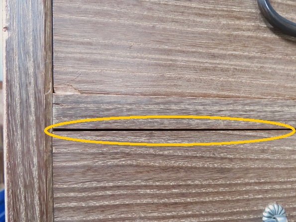 材の収縮により、引出しと棚板の間に大きな隙間が